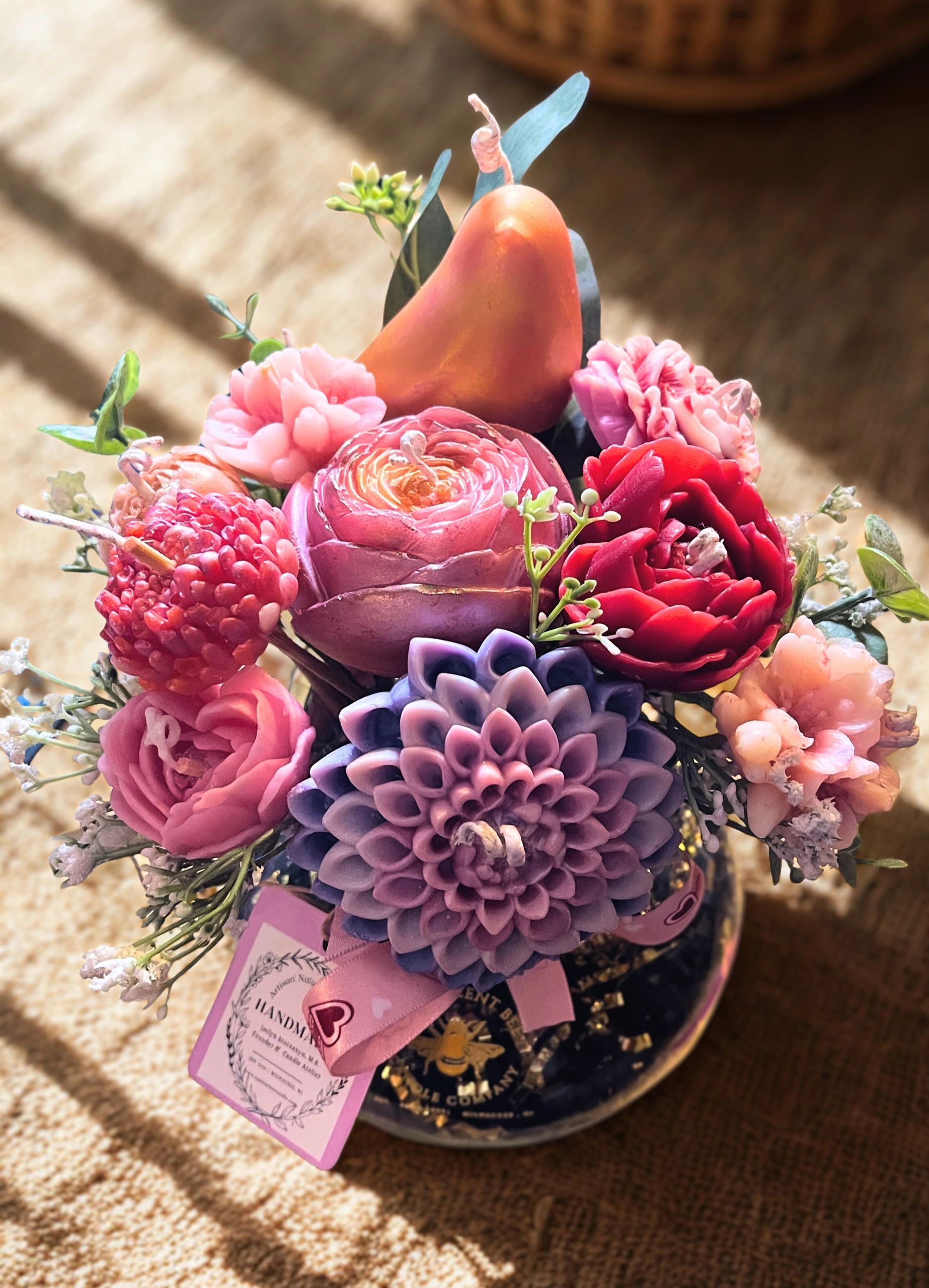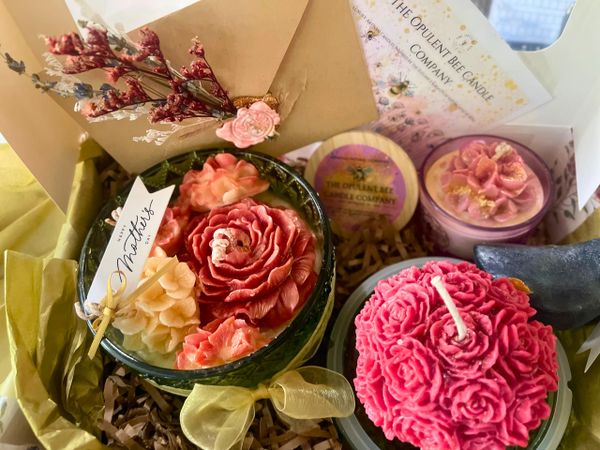 At The Opulent Bee Candle Company, we deliver exceptional craftsmanship and personalized service. We work closely with you to create bespoke floral candles that perfectly complement your event’s design, elevating the atmosphere and leaving a lasting impression.