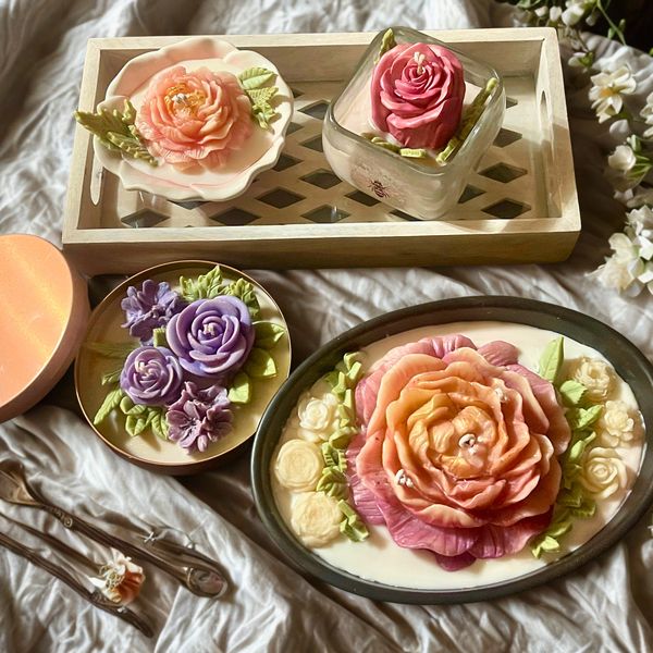 My floral candles are one of a kind. Designed to enchant and soothe, they bring the serene, luxurious ambiance of nature's most beautiful blossoms into your home. Experience the romance of nature—petal by petal. Experience the fusion of artistic candle making and the lush richness of nature with candles that turn any space into a luxurious floral retreat.
